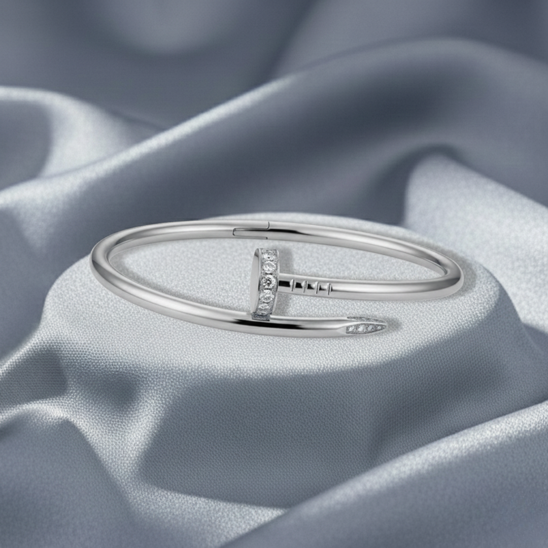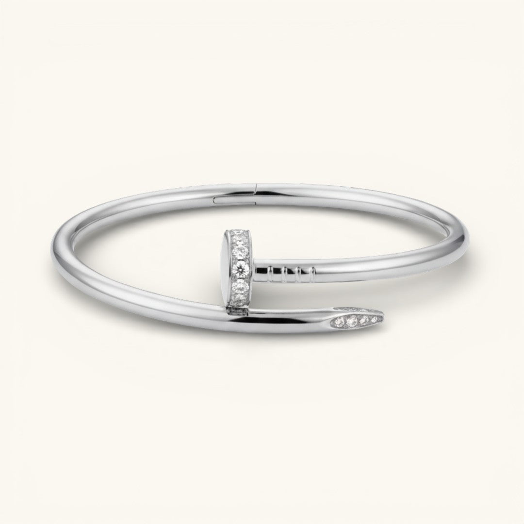 The Elegance Nail Bracelet in gold is a striking piece that balances minimalist design with a touch of glamour. Whether worn alone or layered with other bracelets, it's the perfect accessory to elevate your style for any occasion.